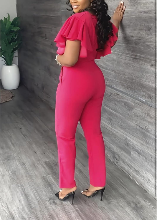 LADIES PINK 2 PIECE HIGH WAISTED WIDE LEG TWO PIECE